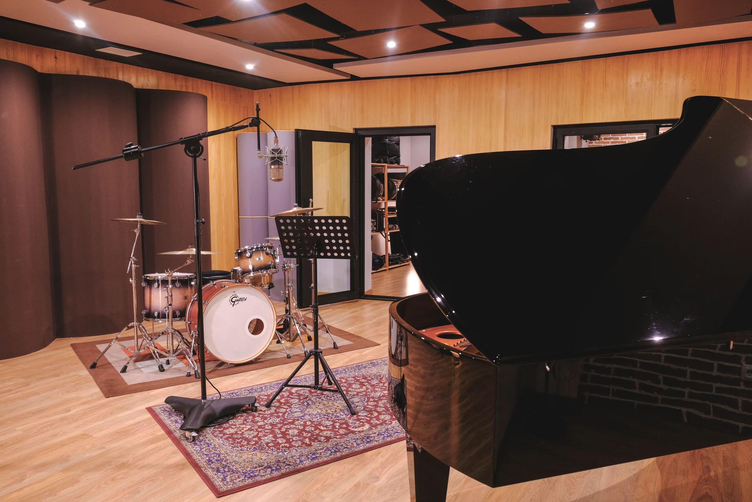 The 14m² Small Booth is a tight, dry space with heavily absorptive walls, offering virtually no natural ambience. Its controlled acoustics make it ideal for close miking, especially for electric and upright bass. While it’s designed for precision, experimenting within the space can yield unique results for any project.