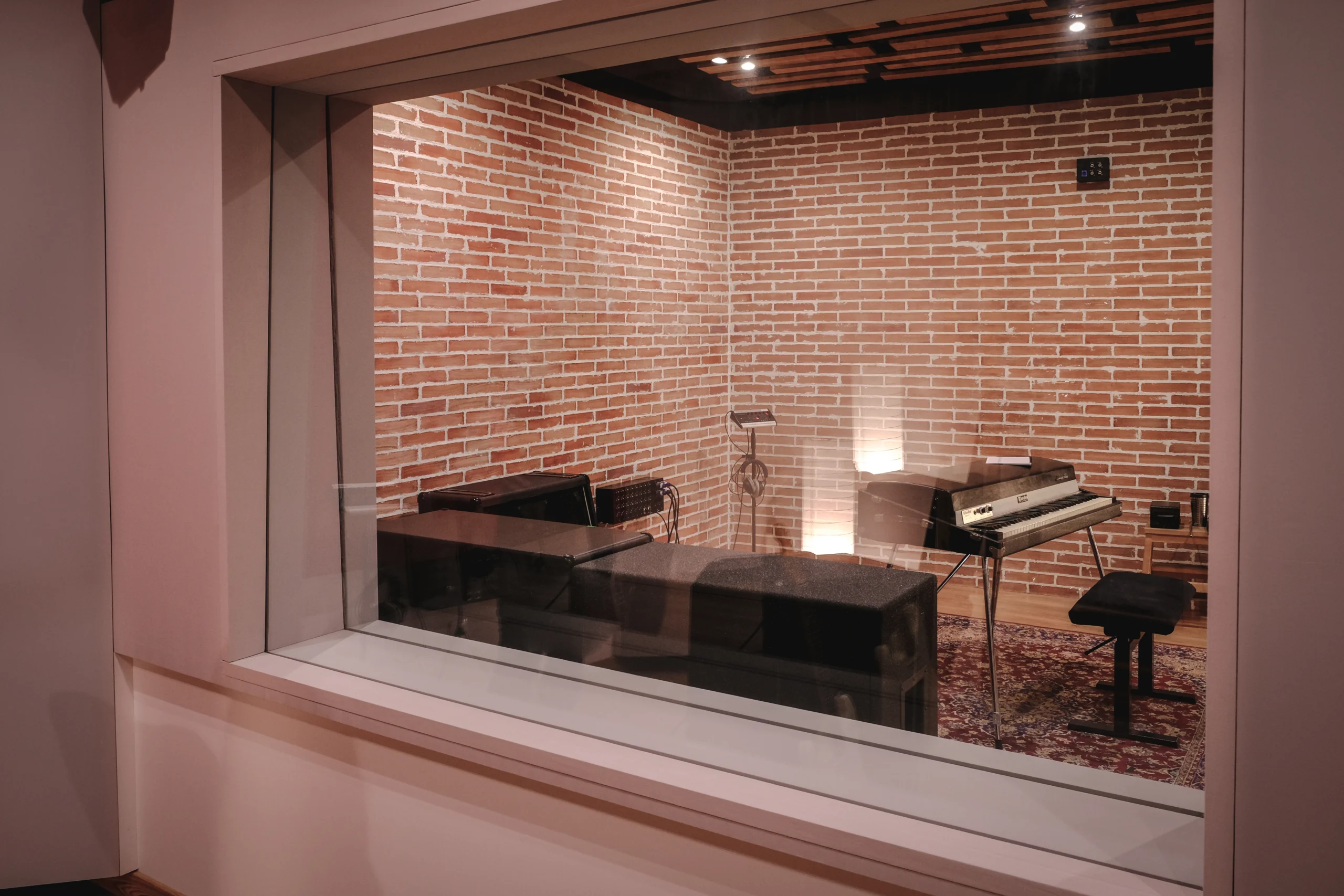 The 20m² Medium Booth features two brick walls that produce prominent early reflections and a decay time roughly half that of the Live Room. Despite its shorter reverb, it maintains a distinctive ambience, making it an ideal space for percussive instruments and guitar amps.