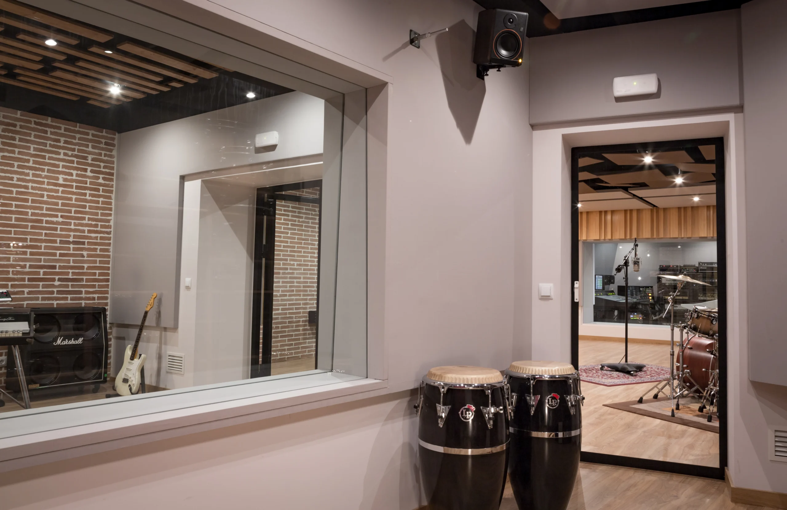 The Live Room, spanning 60m², serves as the main recording space. Its even, rich decay—lasting up to 800ms—adds character and depth, allowing instruments to project naturally. This creates a versatile and musical environment where the room’s unique sonic signature is captured differently with each project, depending on microphone placement and selection.